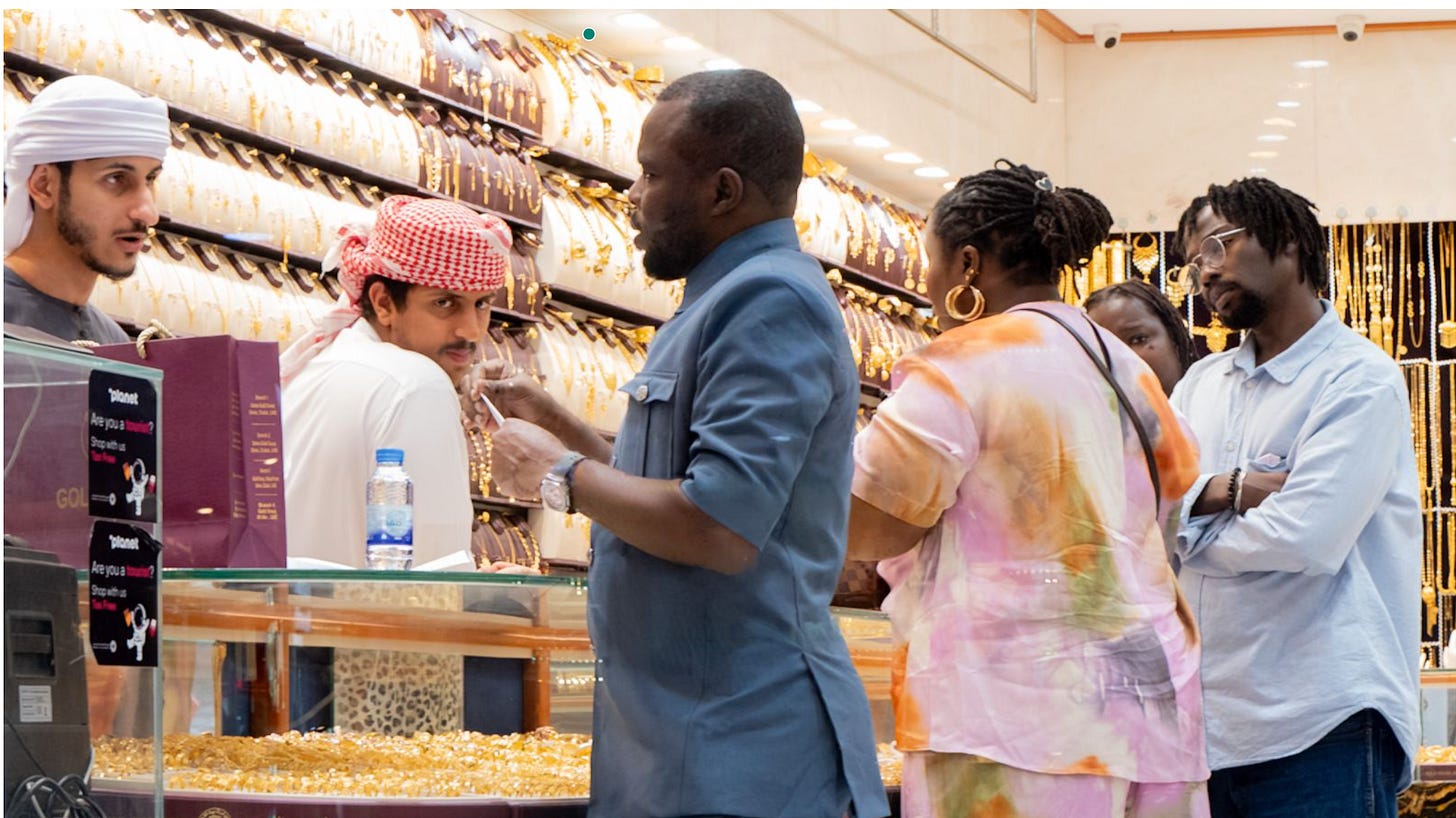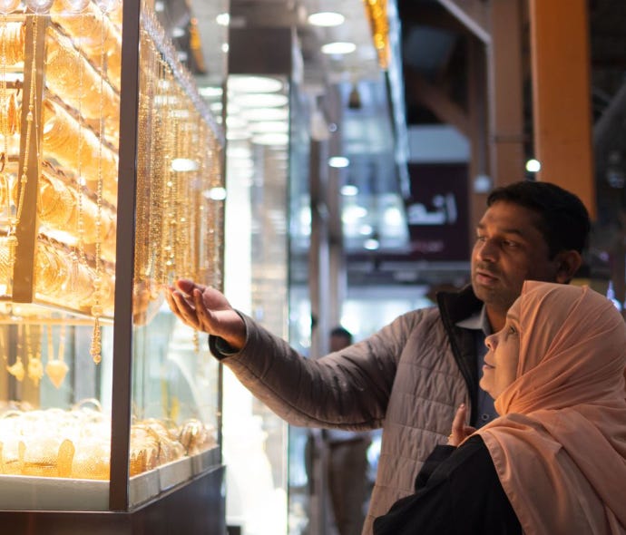 We just returned from a visit to friends in the United Arab Emirates, passing through the busy gold souk of Dubai on the way back. There, at the junction of three continents, the world passes by, looking through the shop windows.